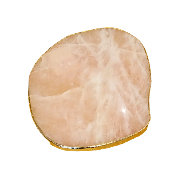 Platter Pedra Quartzo Rosa Com Banho De Ouro Na Borda